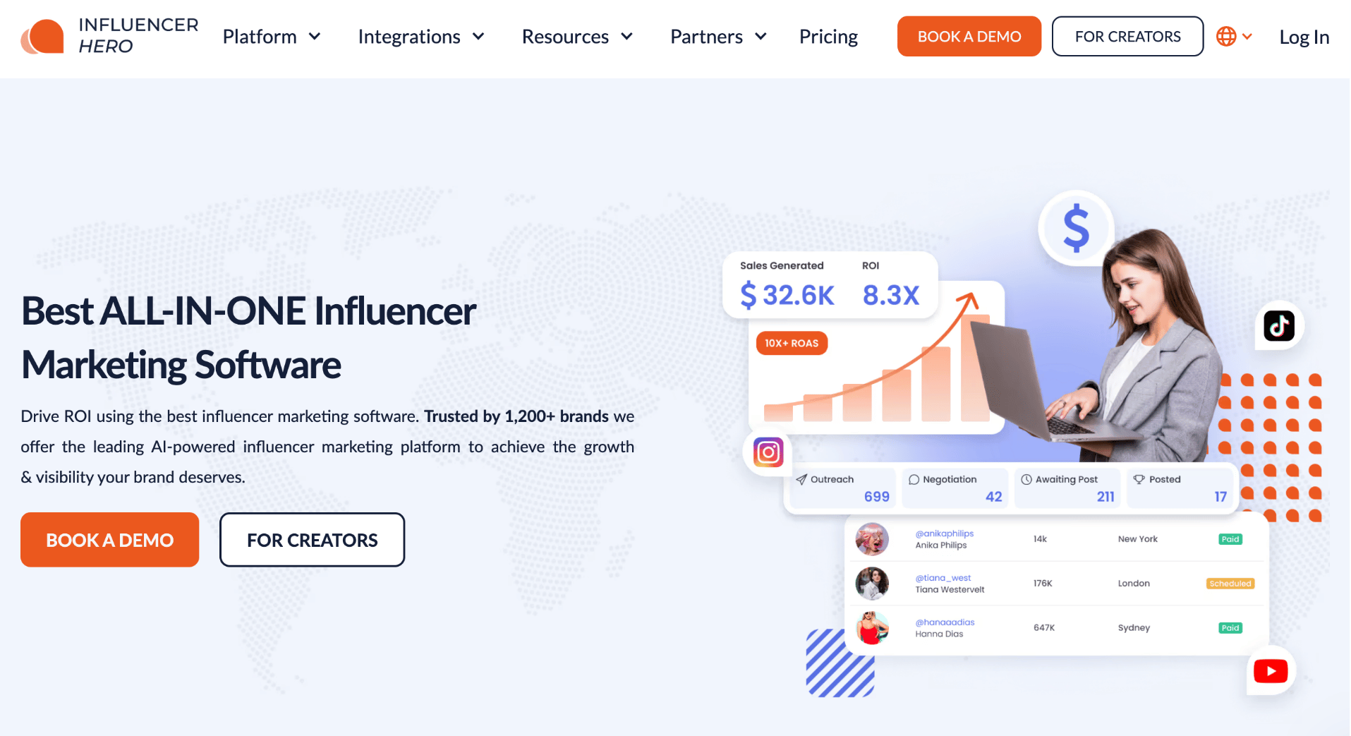 - Campaign management: Run sourcing, activation, and reporting from a centralized dashboard.