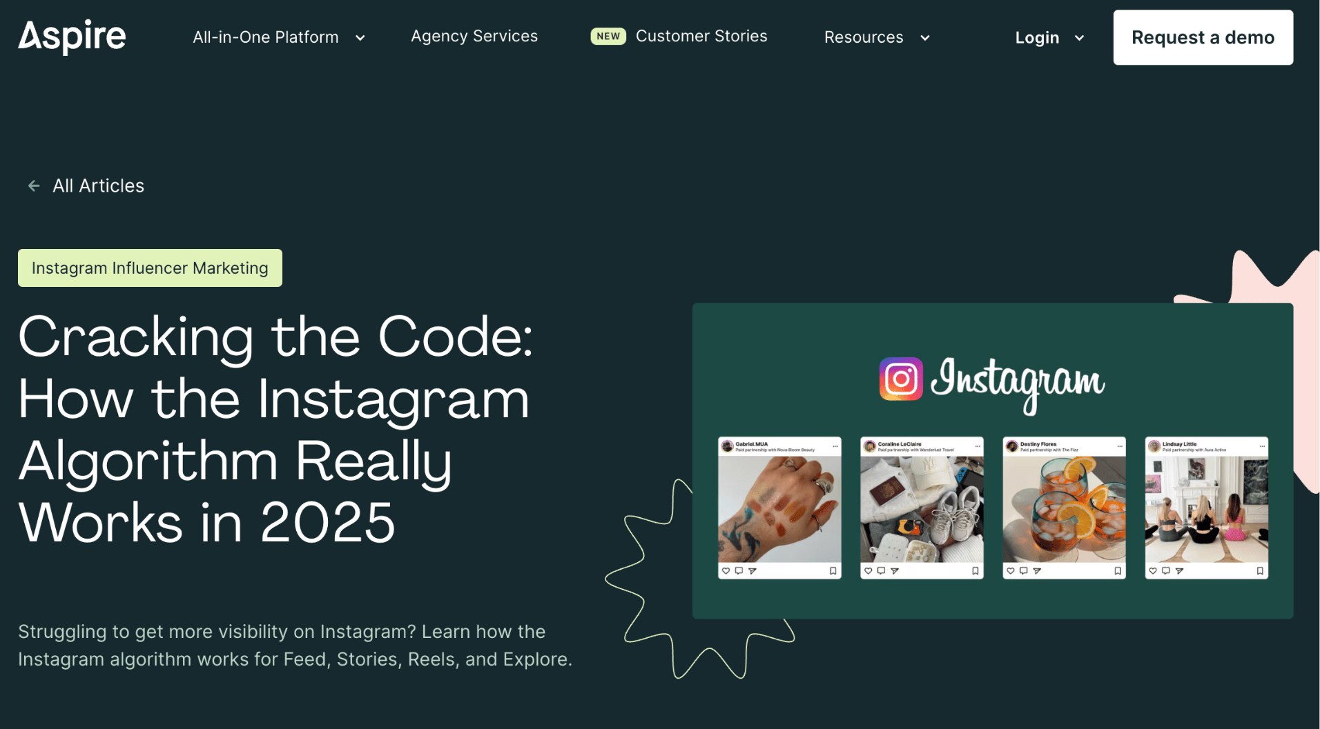 Aspire supports influencer outreach and campaign management across Instagram, TikTok, YouTube, Facebook, and Pinterest.